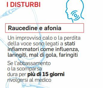 Parlare è un’attività che sembra del tutto normale e naturale. Ma la produzione della voce è in realtà un complesso processo che richiede una serie di movimenti coordinati da parte dei muscoli coinvolti nella respirazione, nella fonazione, nell’articolazione dei suoni (muscoli della gola, del palato, della lingua e delle labbra). Movimenti controllati dal cervello e monitorati dal nostro udito. La potenza della voce deriva dai polmoni: durante l’espirazione, lasciando i polmoni appunto, l’aria crea una corrente che attraversa la trachea e raggiunge la laringe. La magia della voce nasce proprio nella laringe (che gli inglesi chiamano la “scatola della voce”) che ospita le corde vocali, due pliche di muscolo e cartilagine, rivestite di mucosa, tese in orizzontale, che si aprono come due porte scorrevoli durante la respirazione e si accostano quando inghiottiamo il cibo (per evitare che vada di traverso) e durante la produzione della voce. Queste due soffici pliche, attraversate dall’aria, producono vibrazioni armoniche a frequenza diversa, da 100 a 1000 volte al secondo, a seconda del suono prodotto (acuto o grave). Il tono della voce è determinato dalla lunghezza e dalla tensione delle corde vocali, controllata a sua volta dai muscoli laringei. Ma il lavoro delle corde vocali, per quanto prezioso, non basta; il suono generato a questo livello assomiglierebbe infatti ad una specie di ronzio se non intervenissero i muscoli dell’orofaringe, della lingua e delle labbra per articolarlo e diverse “casse di risonanza” (faringe, naso, seni paranasali) per amplificarlo. È così che si completa l’opera e la voce assume la caratteristica identità umana, che trova la sua più alta declinazione nel canto lirico. I disturbi della voce sono tanti e vengono trattati dagli otorinolaringoiatri, coadiuvati dai logopedisti. Quando le corde vocali si infiammano o diventano sede di crescita di tessuti anomali o si paralizzano, non riescono più a lavorare e compare un disturbo della voce.