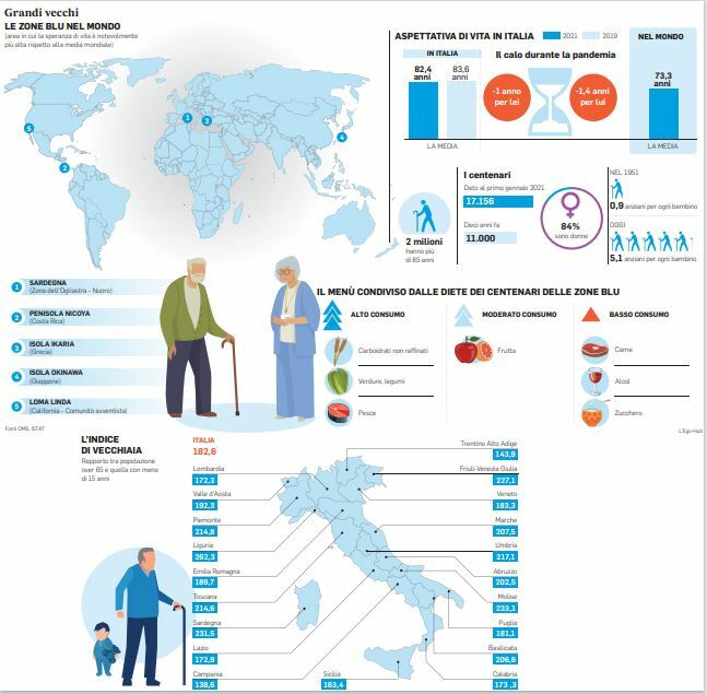 Contiamo circa 17.200 centenari e molti di loro hanno anche superato il secolo. Nel 2020 sfioravano i quindicimila. Oggi sembrano essere proprio loro, con i due milioni di over 85, a farci guardare al futuro con occhi sereni. E, soprattutto, a ripensare le ricerche mediche e tecnologiche. Nei laboratori è tutto un fiorire di studi, analisi e confronti non solo per allungare l’aspettativa di vita (da noi accorciata di 1,2 anni con l’arrivo del Covid) ma per far sì che si possa stare il più possibile in salute. Una rivoluzione nei progetti scientifici, nella pianificazione delle nuove “costruzioni” farmacologiche ma anche, e soprattutto, nel nostro modo di intendere quella fase dell’esistenza.